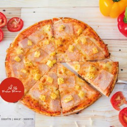 Tomato sauce, mozzarella cheese, pineapple, chicken ham & parmesan cheese